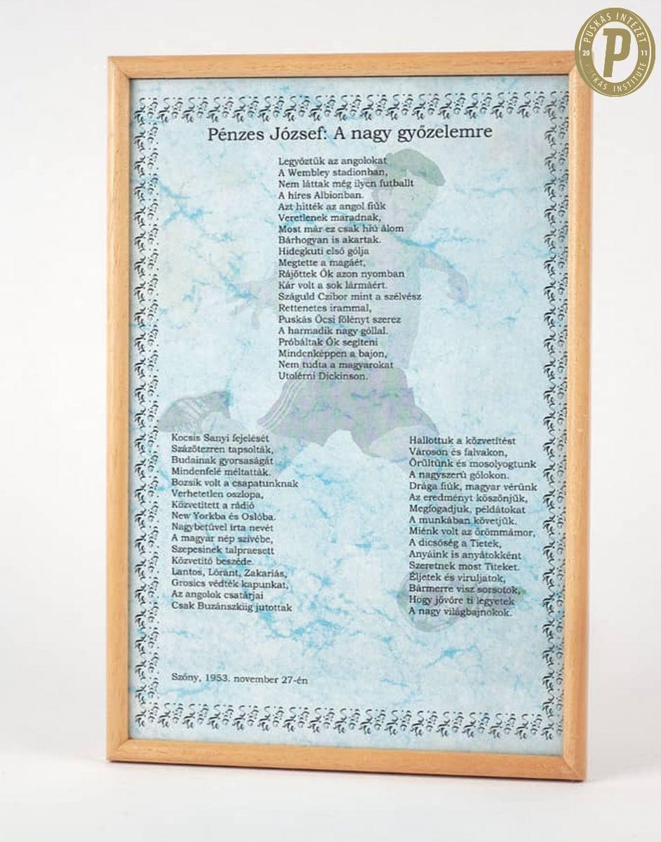 Pénzes József verse a londoni 6–3-as magyar győzelemről. (Fotó: Puskás Intézet)