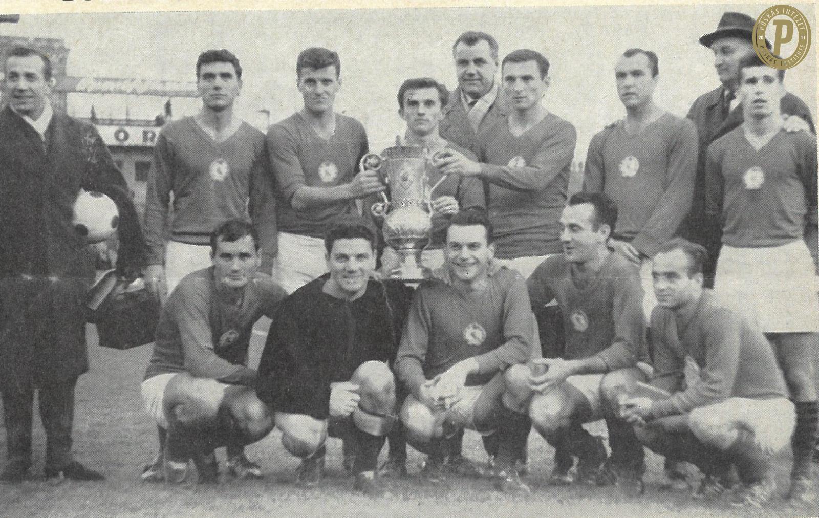 A Bp. Honvéd 1964-es magyar kupa-győztes csapata Komora Imrével (alsó sorban jobbról a második) (fotó: Puskás Intézet)
