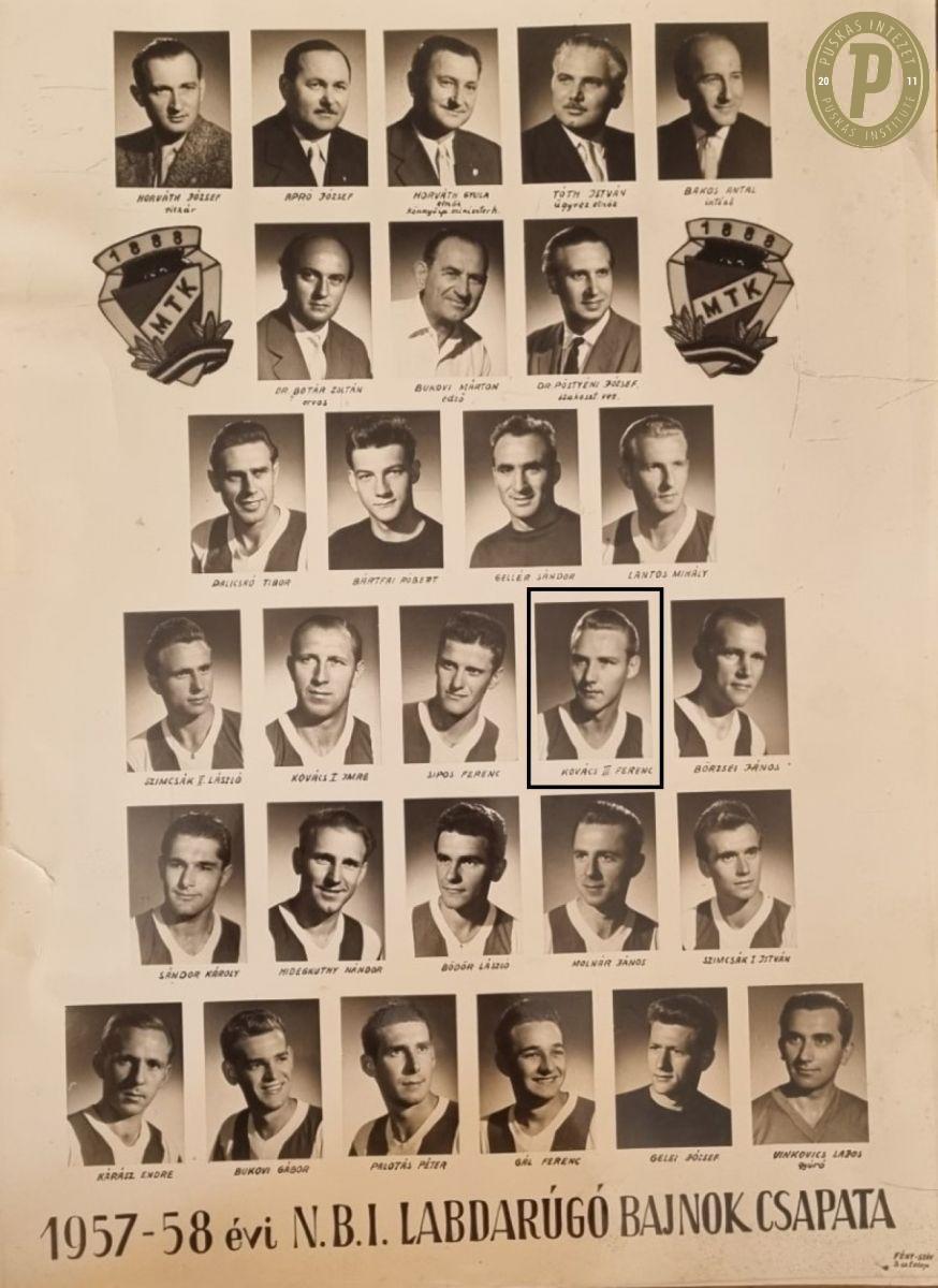 Kovács Ferenc az MTK 1957–1958-as bajnokcsapatának tablóján. (Fotó: Puskás Intézet/Bödör László)