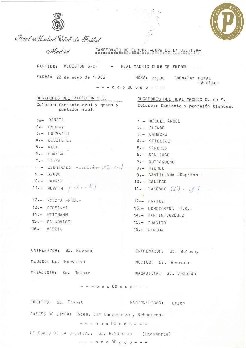 Az 1984–1985-ös UEFA-kupa-döntő, 2. mérkőzés, Real Madrid – Videoton (0–1) programfüzet. (Fotók: Puskás Intézet)