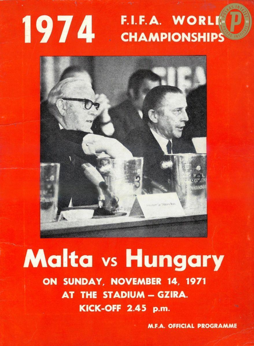 Az 1971. november 14-i Málta–Magyarország (0–2) vb-selejtező programfüzete (fotó: Puskás Intézet)