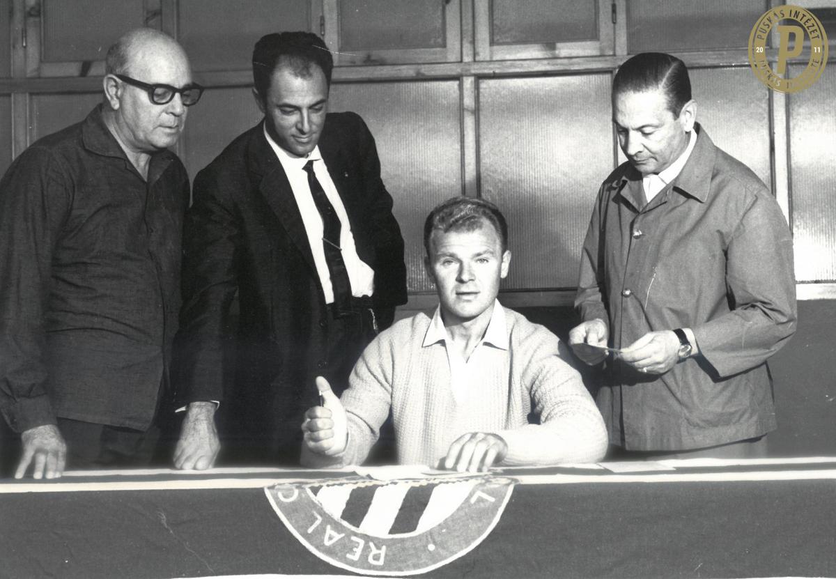 Kubala László aláír a városi rivális RCD Espanyolhoz (fotó: Puskás Intézet/Kubala László)