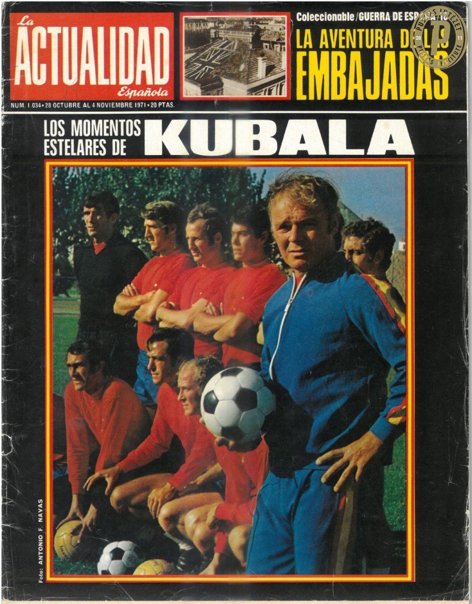 Kubala László a spanyol labdarúgó-válogatott szövetségi kapitányaként a Actualidad Espanyola c. újság borítóján (fotó: Puskás Intézet/Kubala-hagyaték)