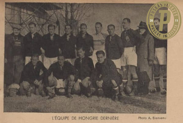 Csapatkép az 1938-as világbajnokság hivatalos programfüzetéből: a vb-ezüstérmes magyar válogatott tagjai Lázár Gyulával a soraiban (felső sor, balról a negyedik).