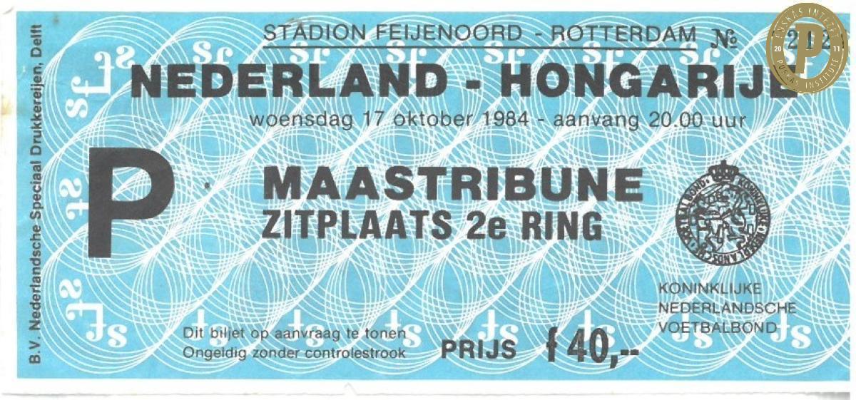 Belépőjegy az 1984. október 17-i Hollandia–Magyarország (1–2) vb-selejtezőre, ekkor győzte le utoljára Magyarország az Oranje gárdáját (fotó: Puskás Intézet)