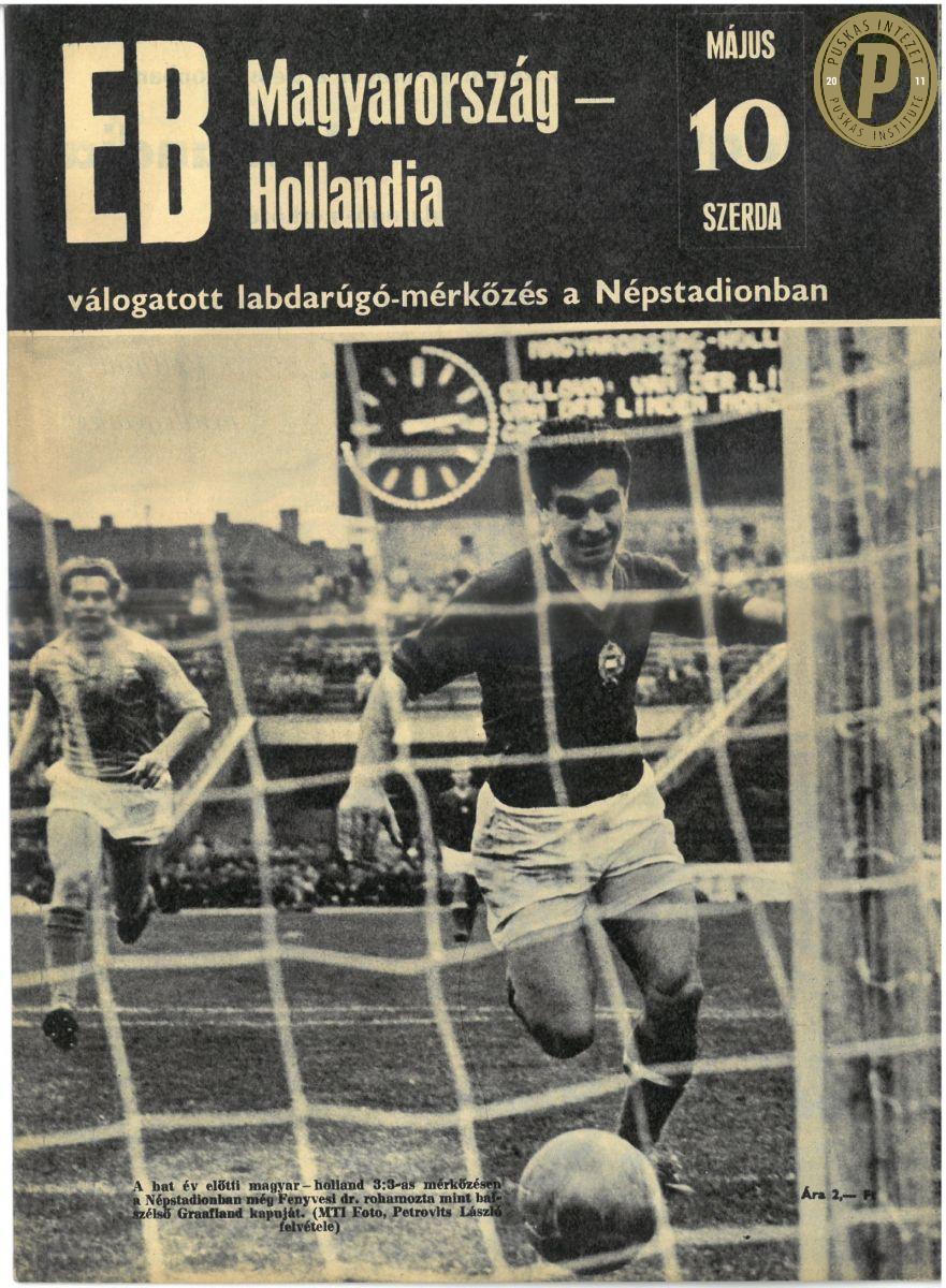 Az 1967. május 10-i Magyarország–Hollandia (2–1) Eb-selejtező műsorfüzete, ezen a mérkőzésen győzött utoljára a magyar válogatott hazai pályán Hollandia ellen (fotó: Puskás Intézet)
