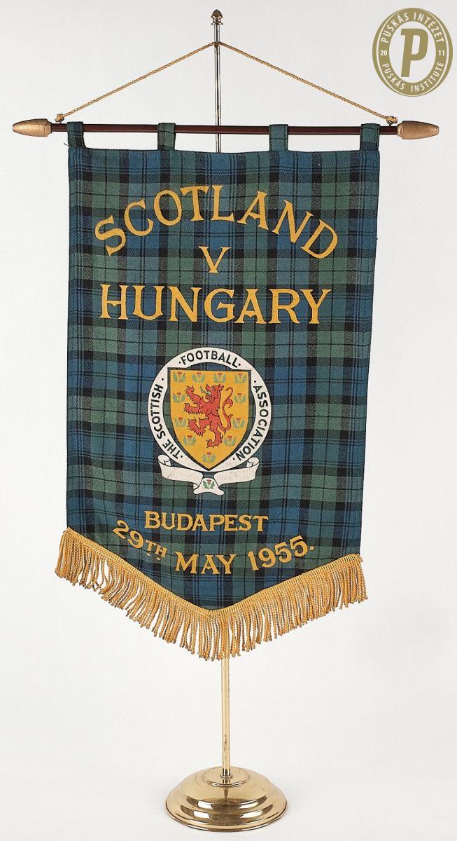 A skót csapatzászló az 1955. május 29-i Magyarország–Skócia barátságos mérkőzésről (fotó: Puskás Intézet/Puskás-hagyaték)