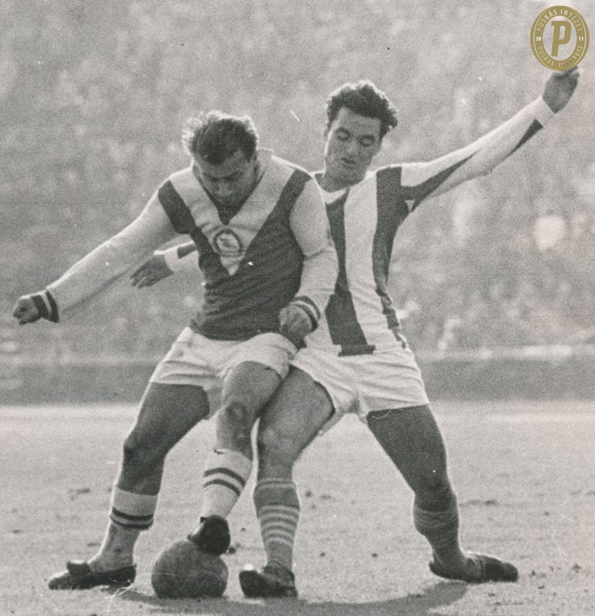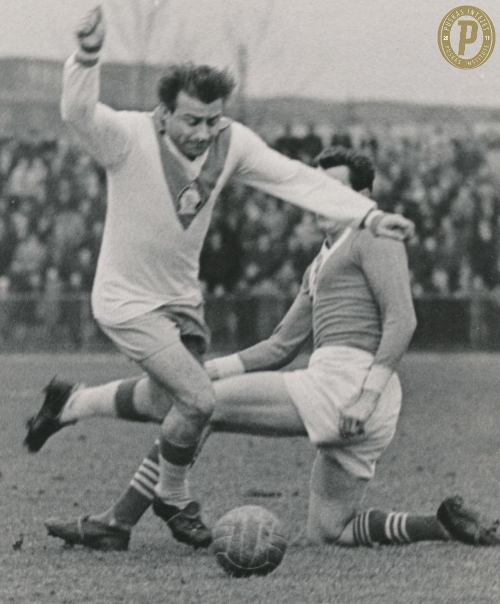 Budai Ii (balra) a Bp. Honvéd mezében csatázik a labdáért (fotó Puskás Intézet/Budai II-hagyaték)