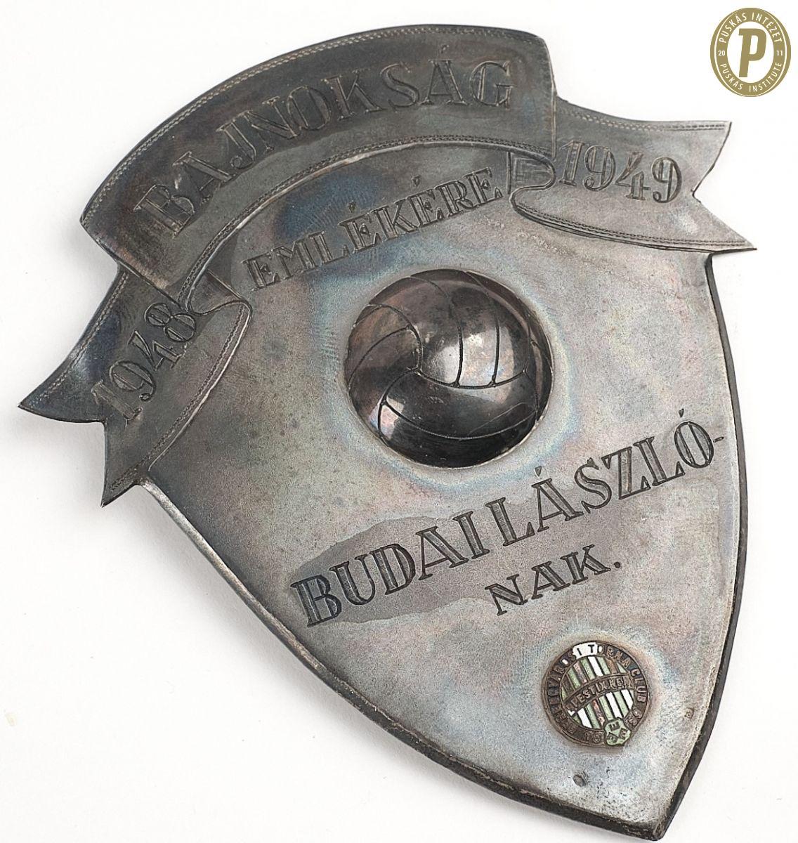 Budai II László 1948–1949-es bajnoki címért kapott emlékpajzsa a babérkoszorúval (fotók: Puskás Intézet/Budai II-hagyaték)