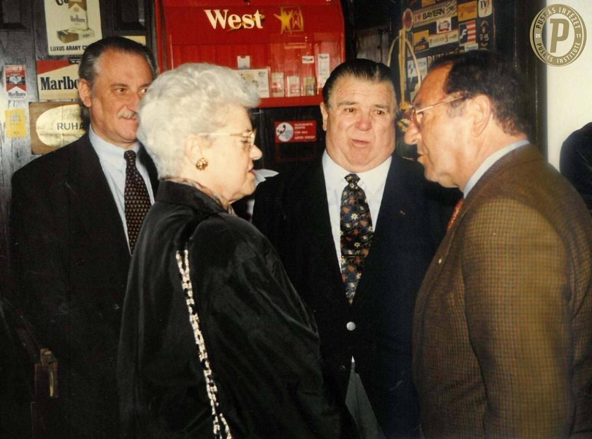 Puskás Ferencné (balra) beszélget férjével (középen) és Francisco Gentóval (jobbra) (fotó: Puskás Intézet/Puskás-hagyaték)