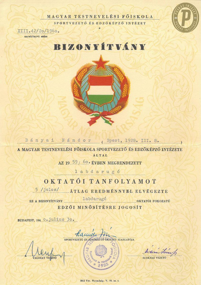 Bányai Nándor oklevele. (Fotó: Puskás Intézet/Bányai Nándor-hagyaték)
