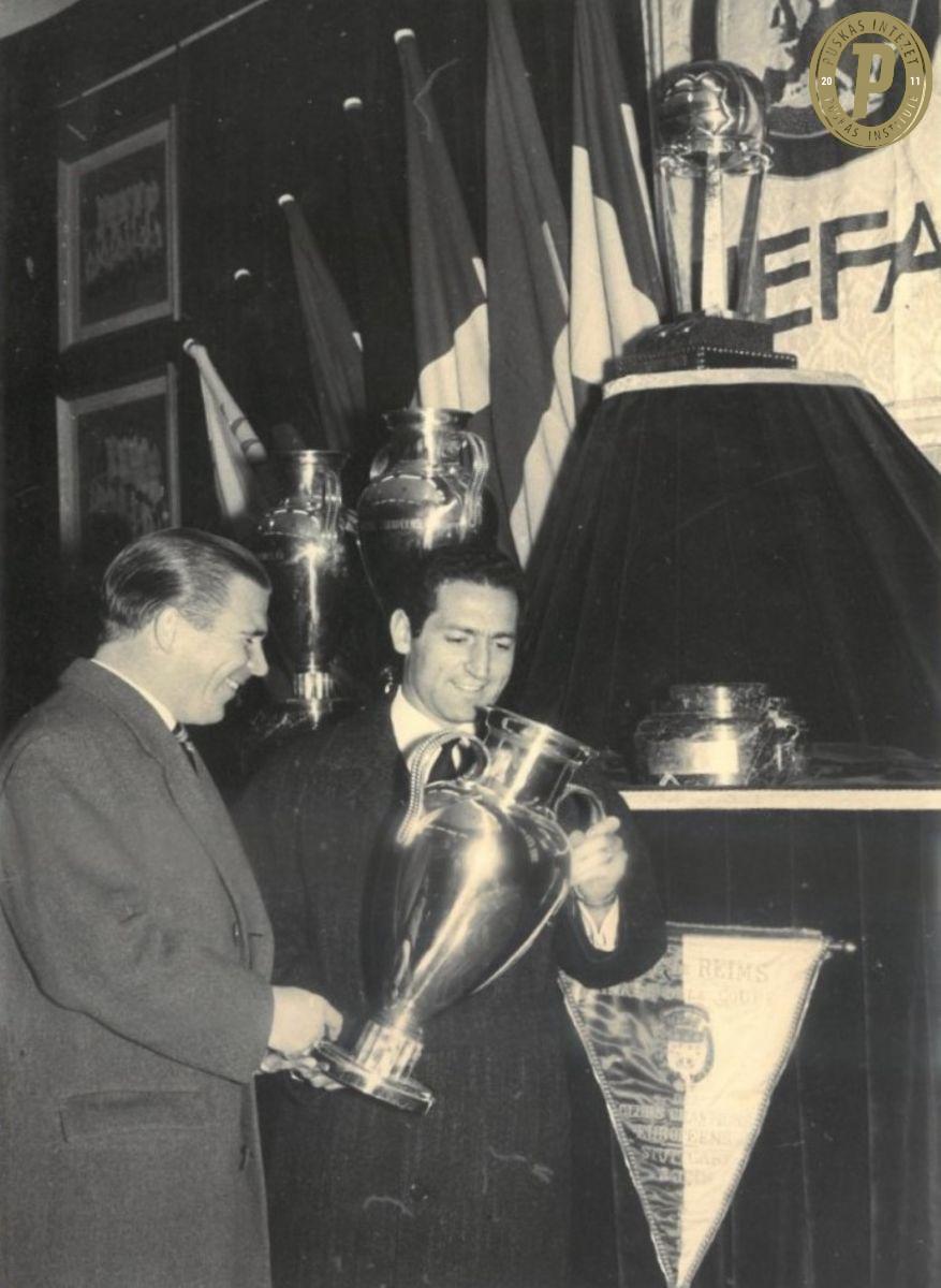 (Borítókép: Puskás Ferenc a Világkupa serleggel UEFA-címeres Real Madrid mezben.)
