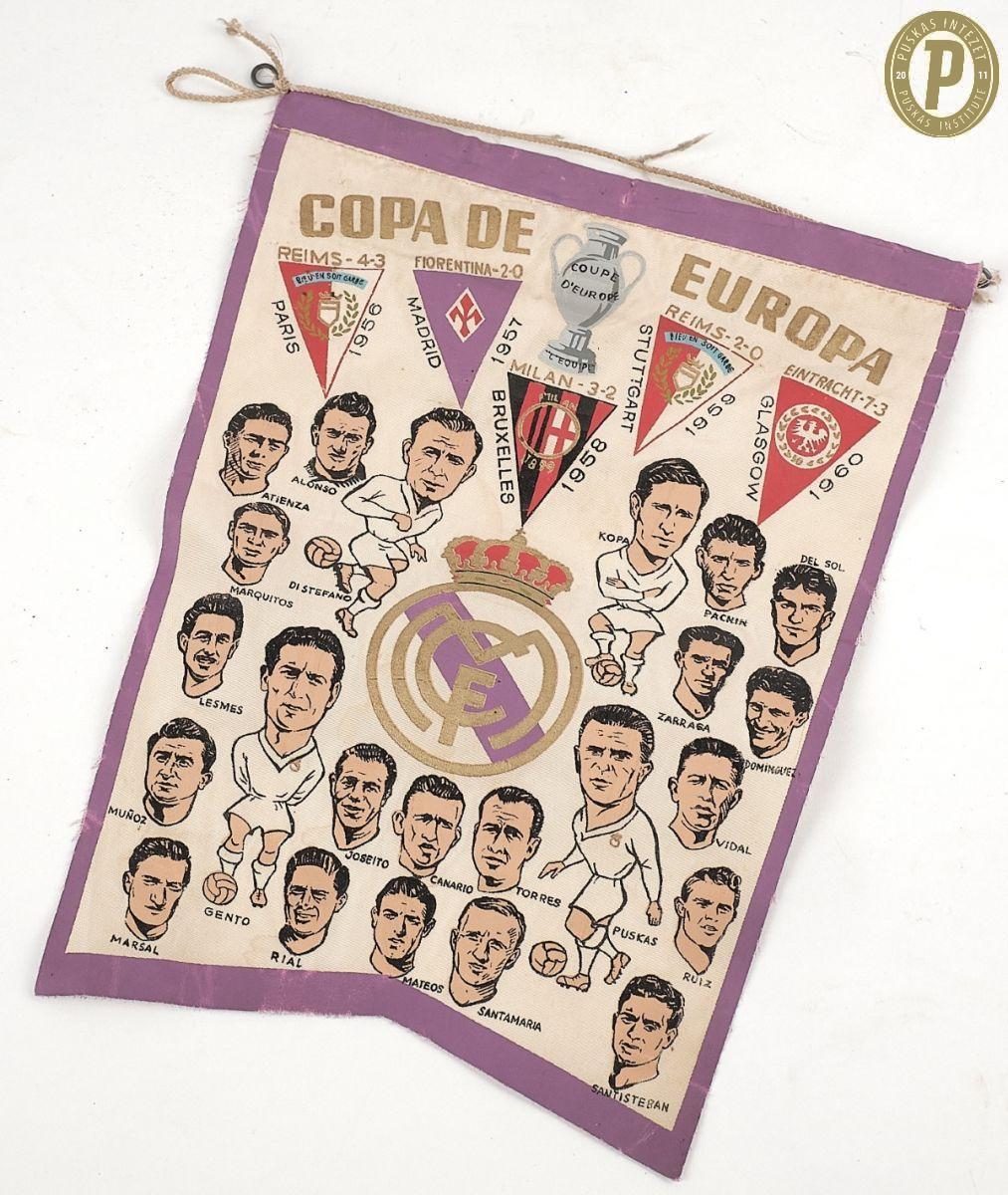 Zászló a Real Madrid első öt BEK-diadalának emlékére (fotó: Puskás Intézet)