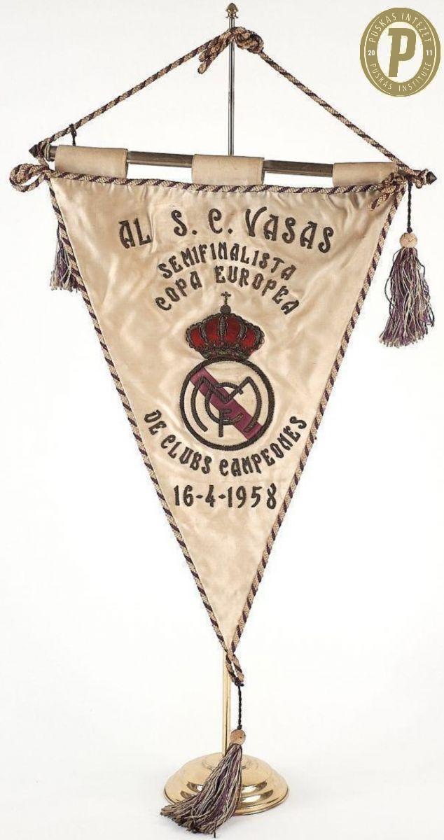 Real Madrid csapatzászló az 1958. április 16., BEK-elődöntő, 2. mérkőzésről: Vasas – Real Madrid (2–0) (fotó: Puskás Intézet)