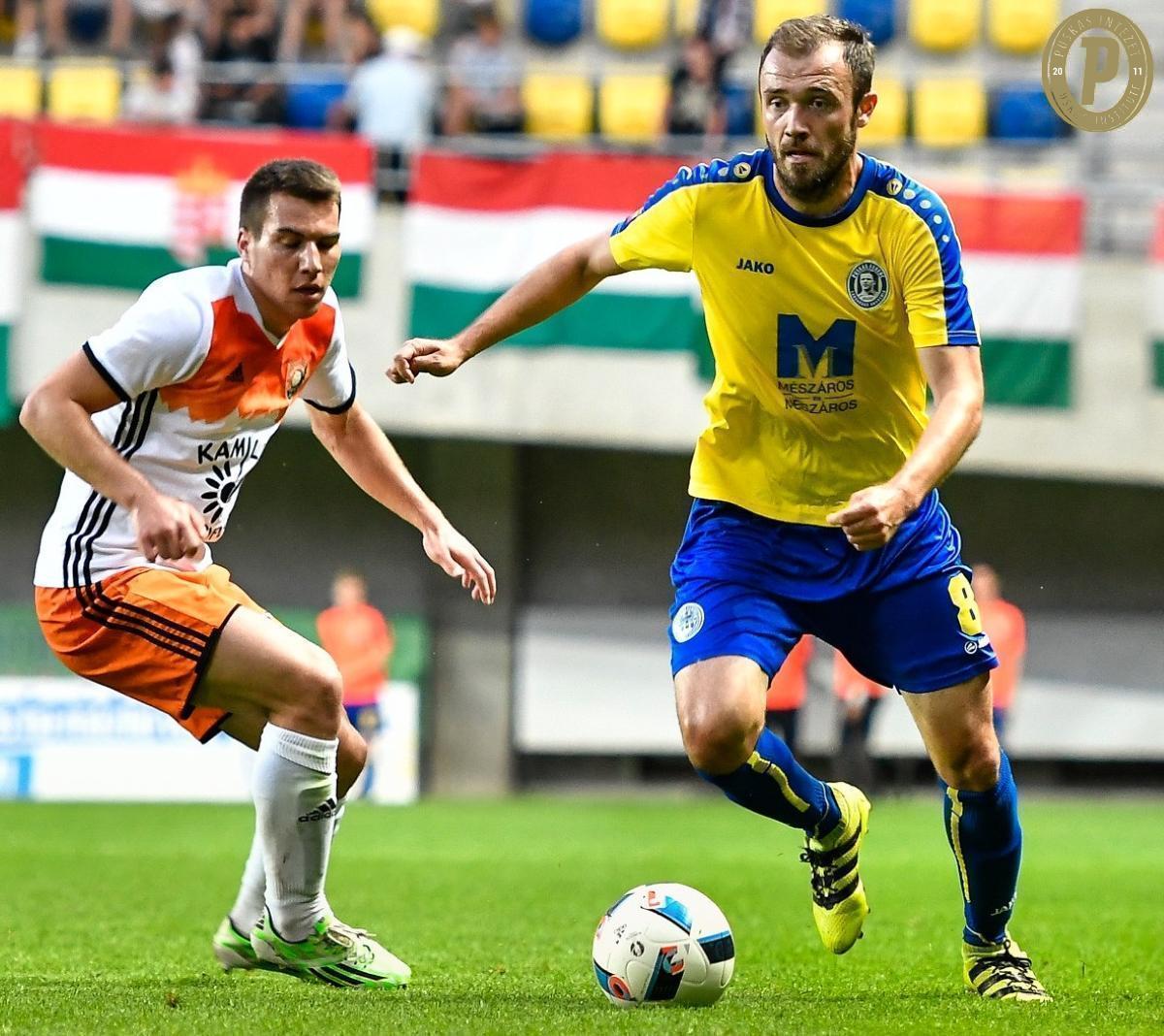 Sándor György (jobbra) a Puskás Akadémia FC játékosaként a Balmazújváros elleni NB II-es bajnokin a Pancho Arénában (fotó: Puskás Akadémia flickr)