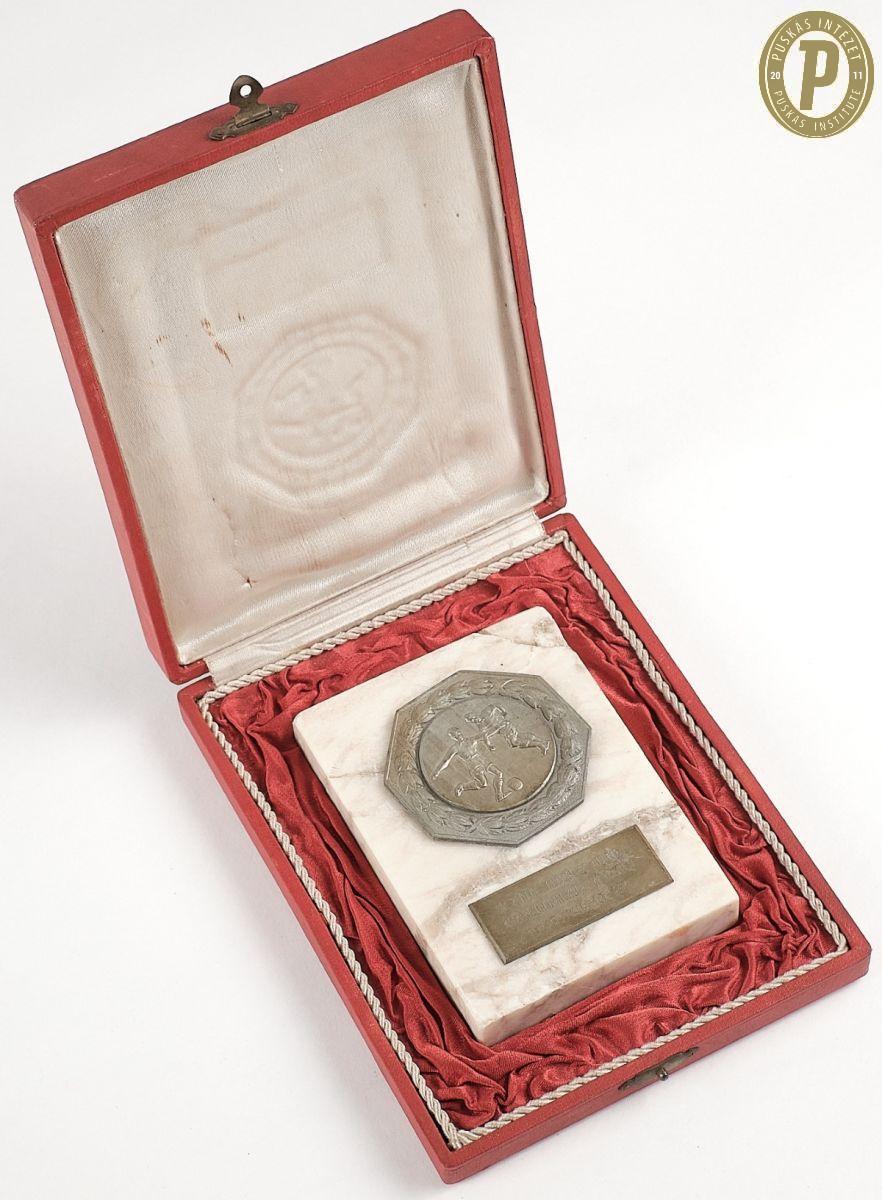 Puskás Ferenc emlékplakketje az 1955-ös Bp.Vörös Lobogó–Bp. Honvéd Közép-európai Kupa-párharcról (fotók: Puskás Intézet/Puskás-hagyaték)