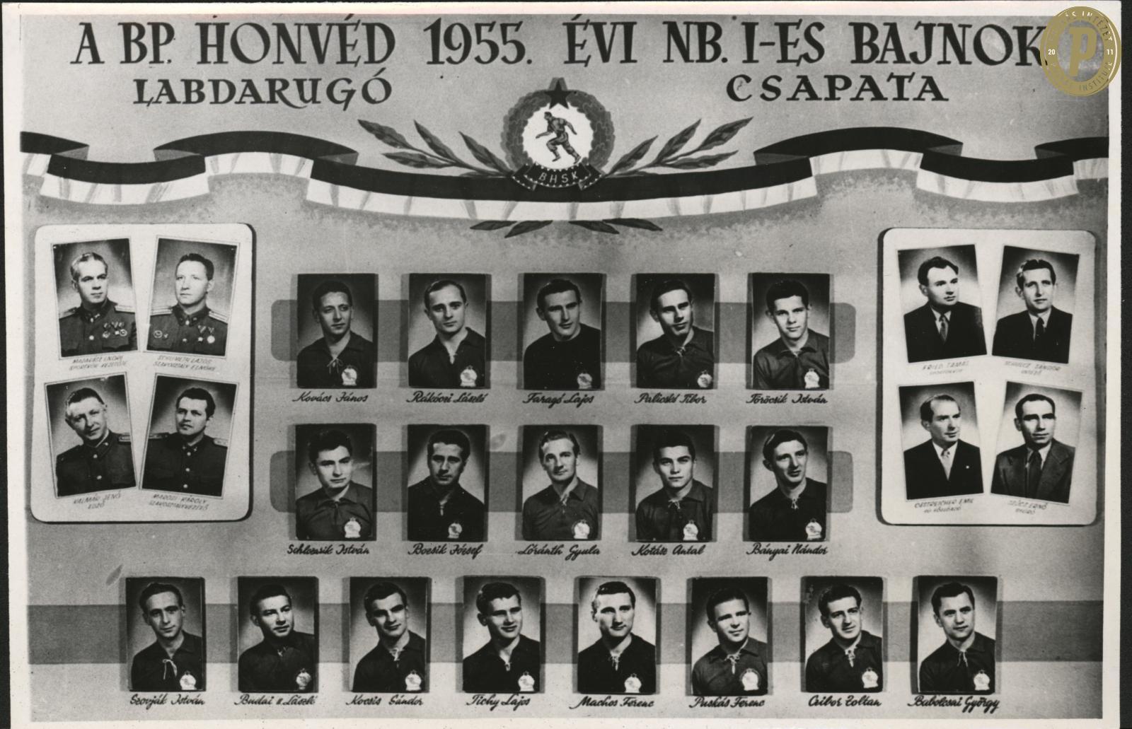 A Bp. Honvéd 1955-ös bajnokcsapatának a tablója (fotó: Puskás Intézet/Puskás-hagyaték)