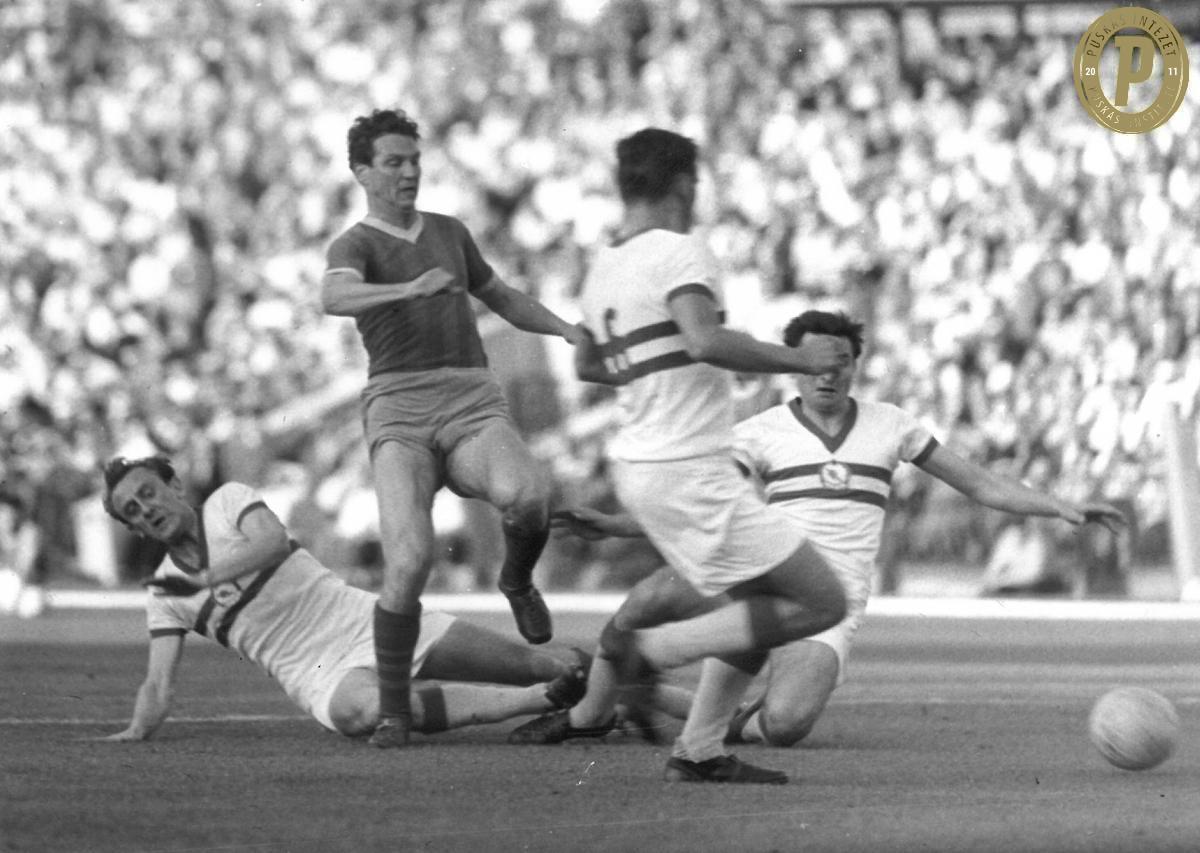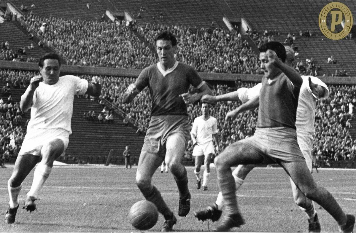 Szilágyi Gyula (középen) harcol a labdáért. (Fotó: Puskás Intézet)
