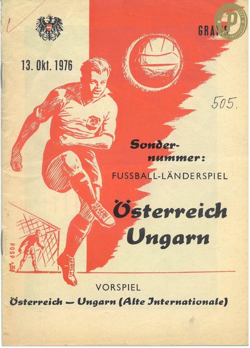 Az 1976-os Ausztria – Magyarország mérkőzés meccsfüzete. Ez a találkozó volt Törőcsik András első válogatott fellépése. (Fotó: Puskás Intézet)