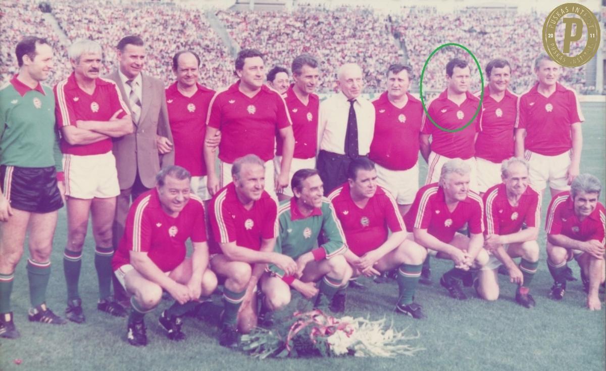 Novák Dezső a Magyar Öregfiúk Válogatott tagjaként Puskás Ferenc 1981-es hazatérésekor a Népstadionban (fotó: Puskás Intézet/Grosics-hagyaték)
