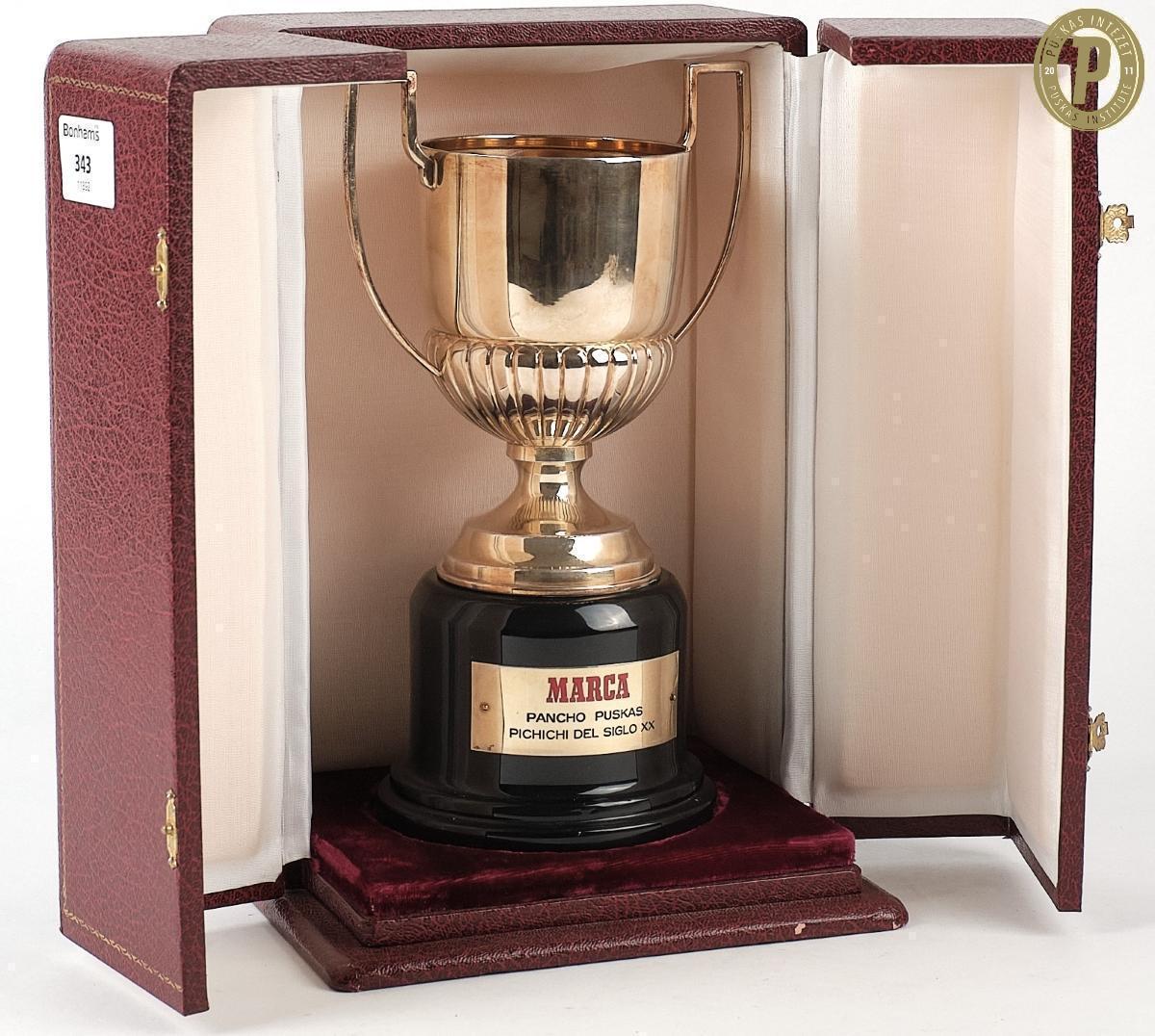 Aranykupa, amelyet Puskás „Pancho” Ferenc spanyol gólkirályi címeiért kapott a spanyol MARCA újságtól (fotó: Puskás Intézet/Puskás-hagyaték)