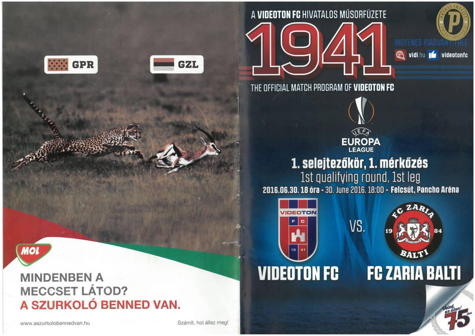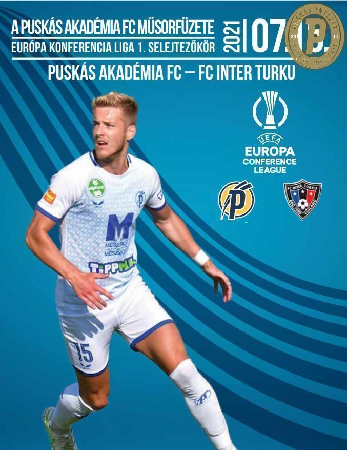 A 2021. július 15., Európa-konferencia-liga, 1. selejtezőkör, 2. mérkőzés: Puskás Akadémia FC–FC Inter Turku (2–0) műsorfüzet, ez volt a PAFC történetének első hazai nemzetközi kupamérkőzése. (Fotó: Puskás Intézet)