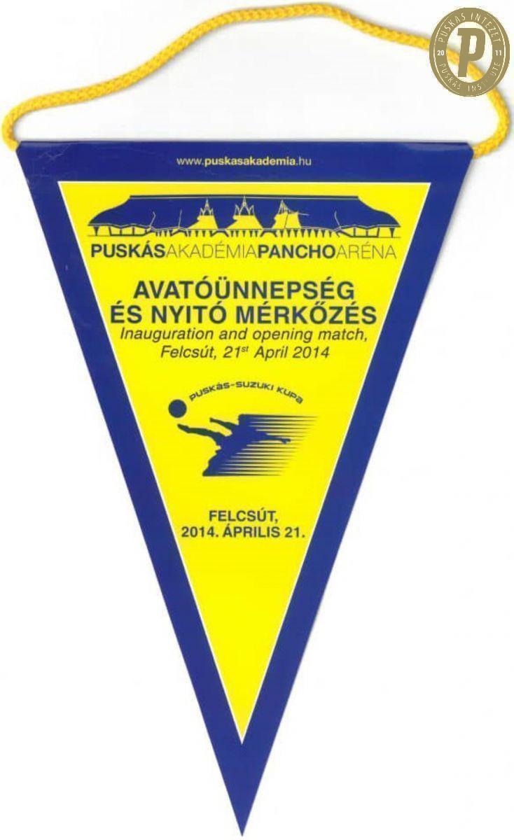 Emlékzászló a Pancho Aréna megnyitójáról (fotó: Puskás Intézet)