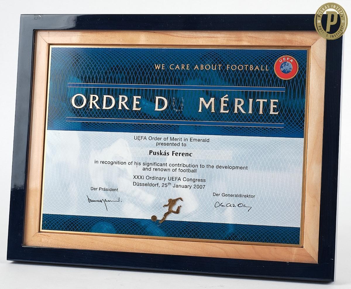 Puskás Ferenc UEFA Order of Merit Smaragd-fokozatú posztumusz kitüntetése, 2007 (fotó: Puskás Intézet/Puskás-hagyaték)