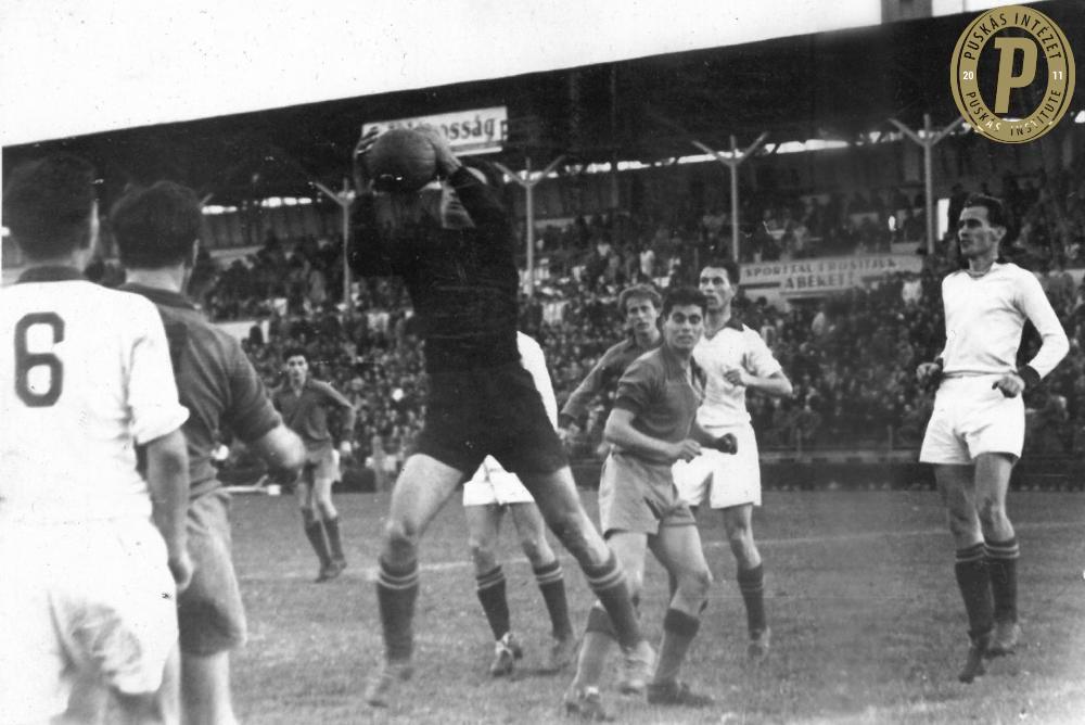 Gellár Sándor védi a magyar B-válogatott kapuját a Népstadionban Csehszlovákia B ellen (fotó: Puskás Intézet/Gellér-hagyaték)