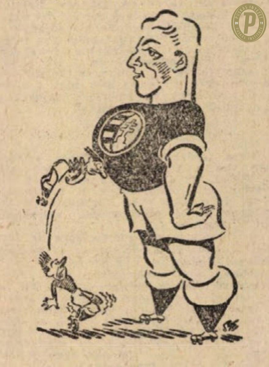 Lantos Mihály karikatúra a mérkőzés után a Népsportban (fotó: Puskás Intézet)