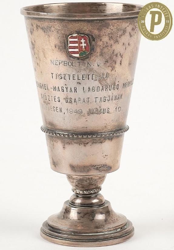 Puskás Ferenc emlékserlege az 1949. július 10-i Magyarország – Lengyelország (8–2) barátságos mérkőzésről (fotó: Puskás Intézet/Puskás-hagyaték)