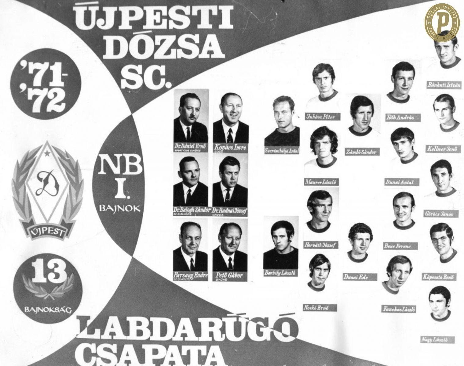 Az Újpest 1971–1972-es magyar bajnokcsapatának a tablója (fotó: Puskás Intézet/Bene-hagyaték)